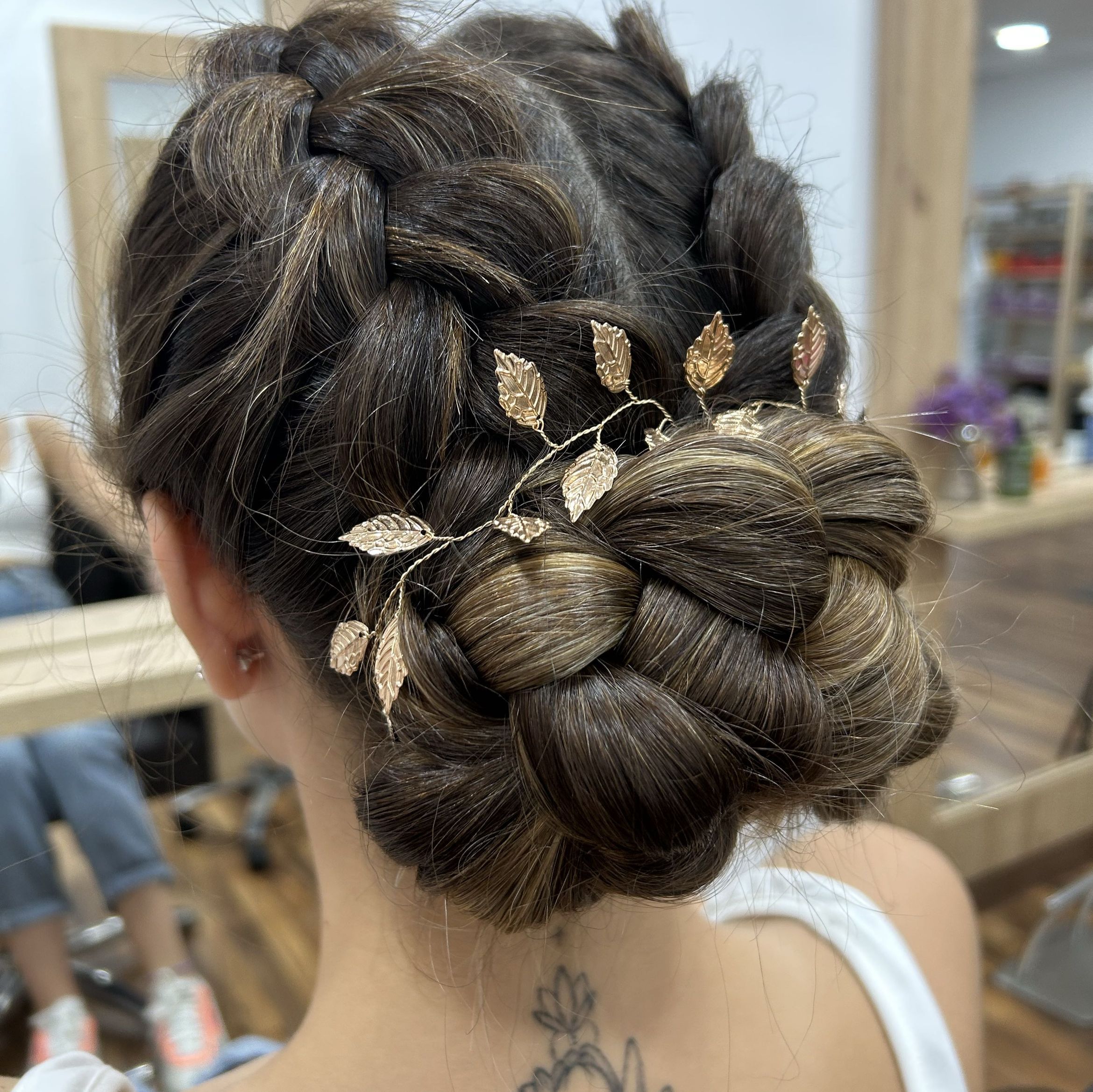 Ornamentos Pequeños: Los adornos pequeños, como horquillas con gemas o perlas, son más sutiles y elegantes. Son perfectos para eventos formales donde la discreción es clave. En peinados como trenzas o semi recogidos, estos pequeños detalles pueden añadir un toque delicado y refinado.